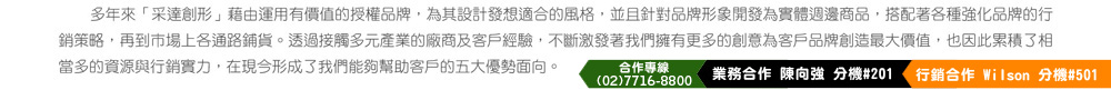 采達創形有限公司 Color & Character Co., Ltd. 版權所有 // 連絡電話:02-7729-3001 // 傳真電話:02-2974-0088 //